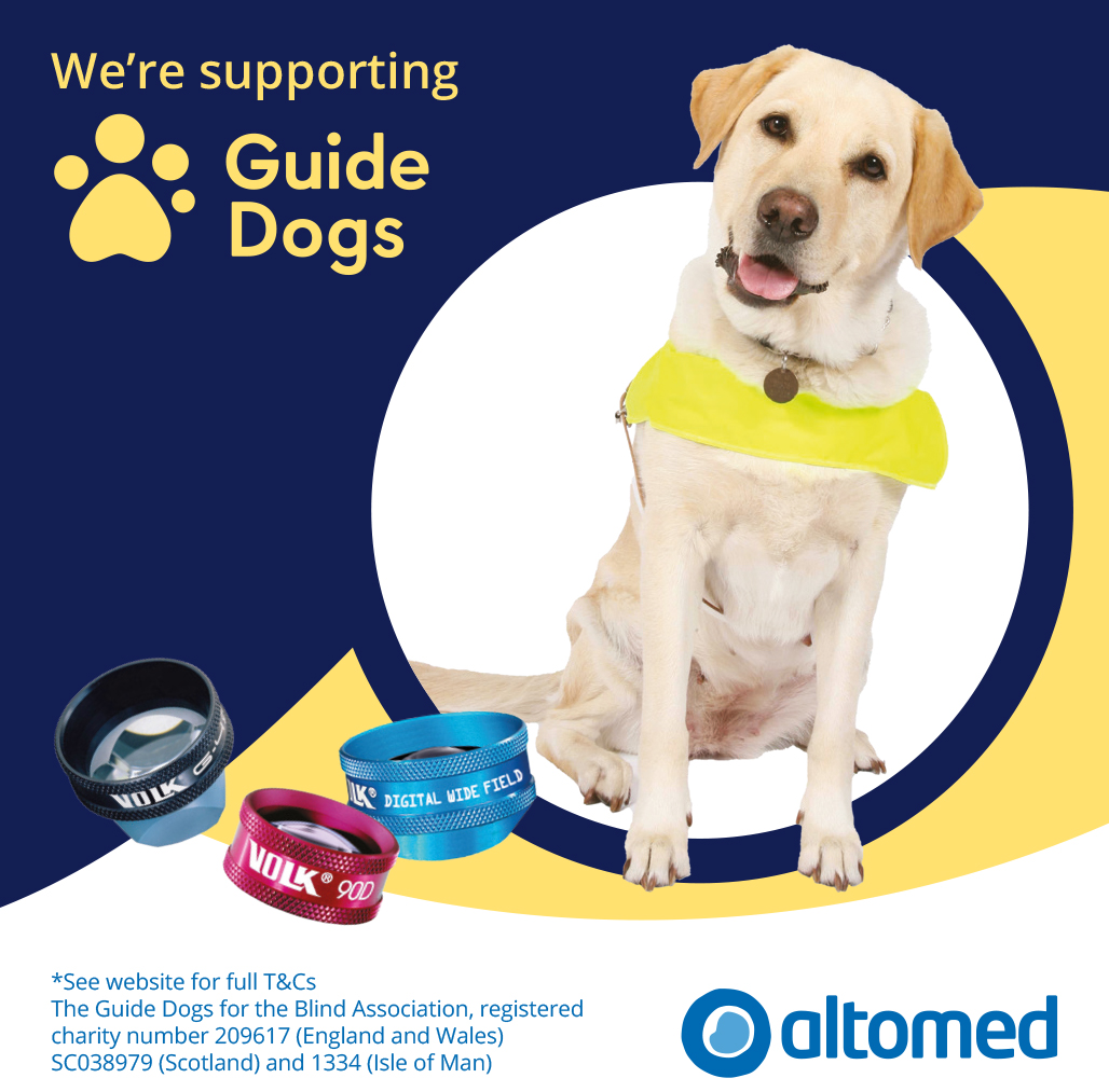 For every sale of a reusable Volk lens made during the promotion period, Altomed will donate £10 plus VAT to Guide Dogs for the Blind Association (Trading Company) Ltd, a registered charity in England and Wales (209617), Scotland (SC038979) and Isle of Man (1334) and to which it covenants all of its taxable profits at the end of the year.